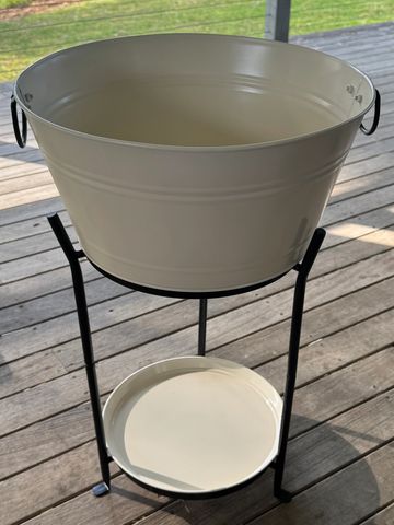 An amazing addition to your wedding ceremony, especially in warm weather. The tub is capable of holding 1/2 a large bag of ice and 15-20 cans of soft drink or bottles of water. I have two of these available, they look super cute with one sitting either side of the aisle where guests can grab a drink as they enter the ceremony. I also have beautiful white lined cane baskets that fit in the bottom on the tray, perfect for tissues, sunscreen, guest keepsakes etc. Ice & drinks not included.